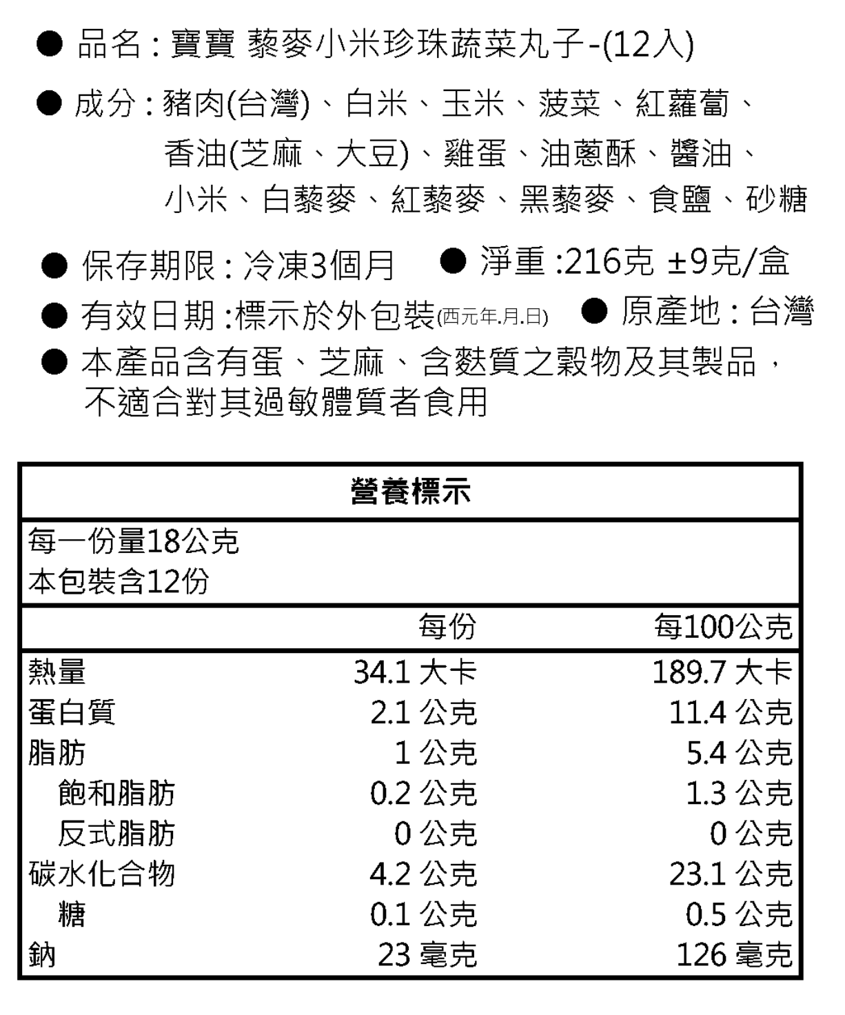 寶寶藜麥小米珍珠丸子一盒12顆/約210克