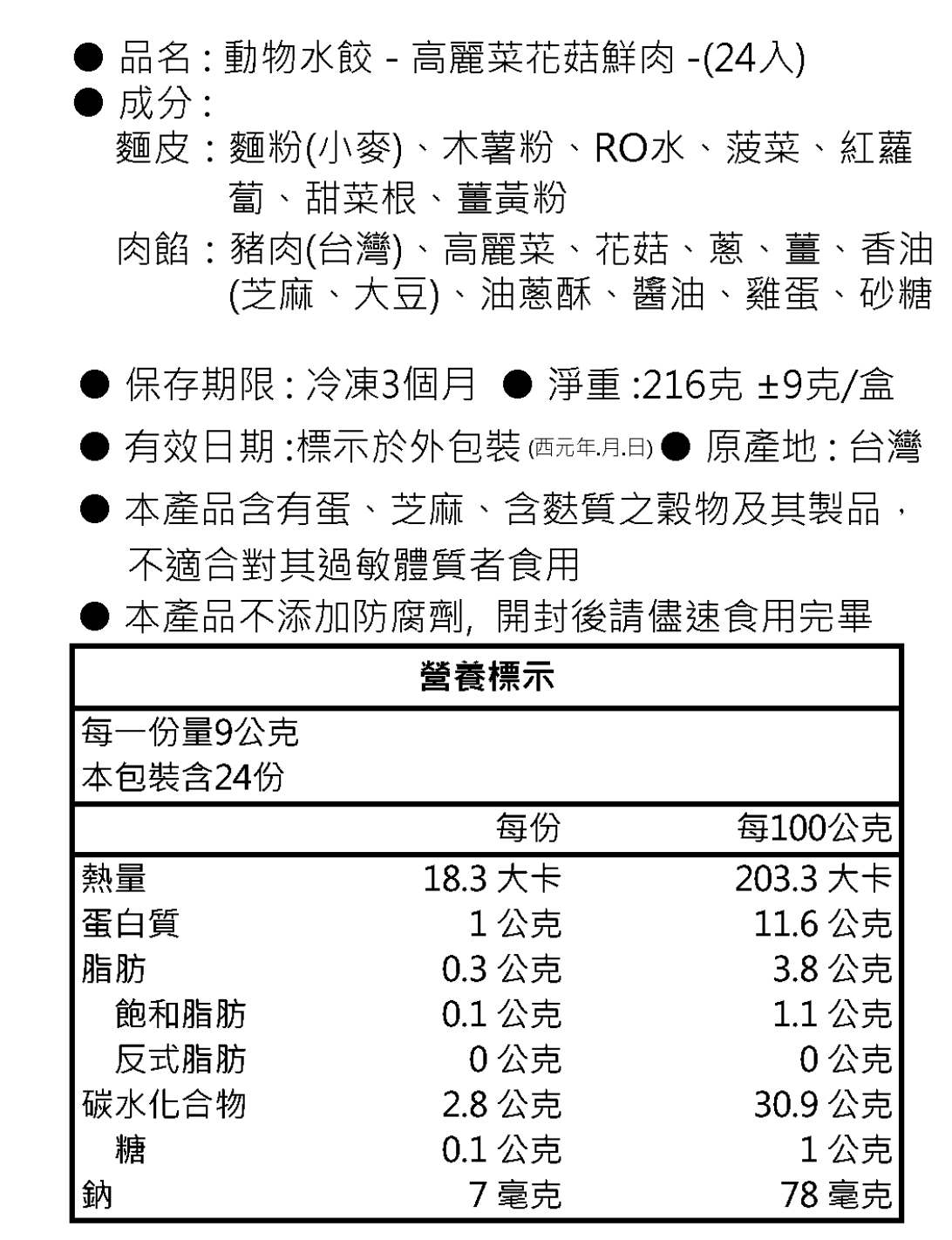 動物水餃-高麗菜花菇鮮肉|微調味|1Y+