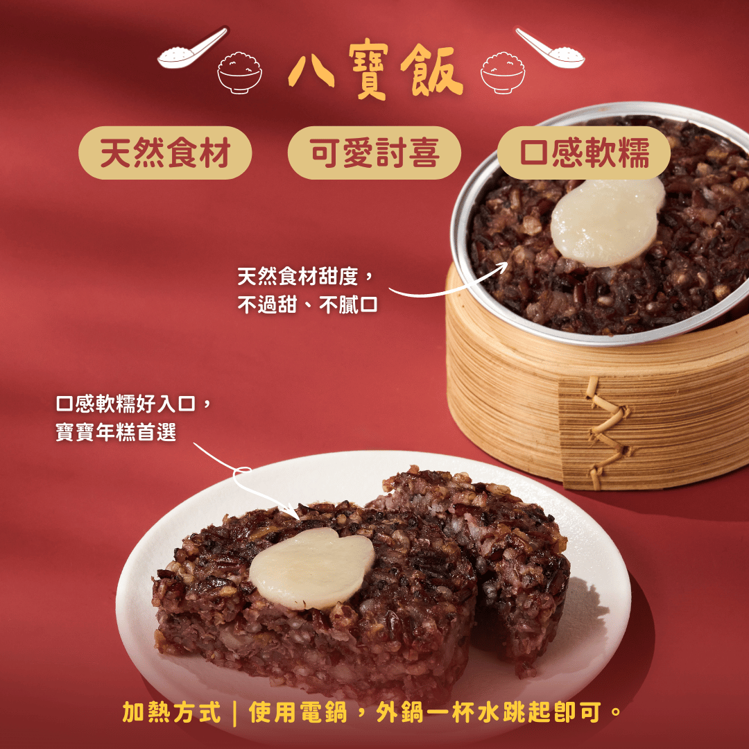 商品詳情 有購買此品項的訂單,整張訂單將會01/14 開始陸續出貨。 如果有較急需其他產品的訂單,請另外下單喔,謝謝您。 2026年菜單品- 八寶飯|微調味|1Y+ (1/14陸續出貨) TWD $220 TWD $220